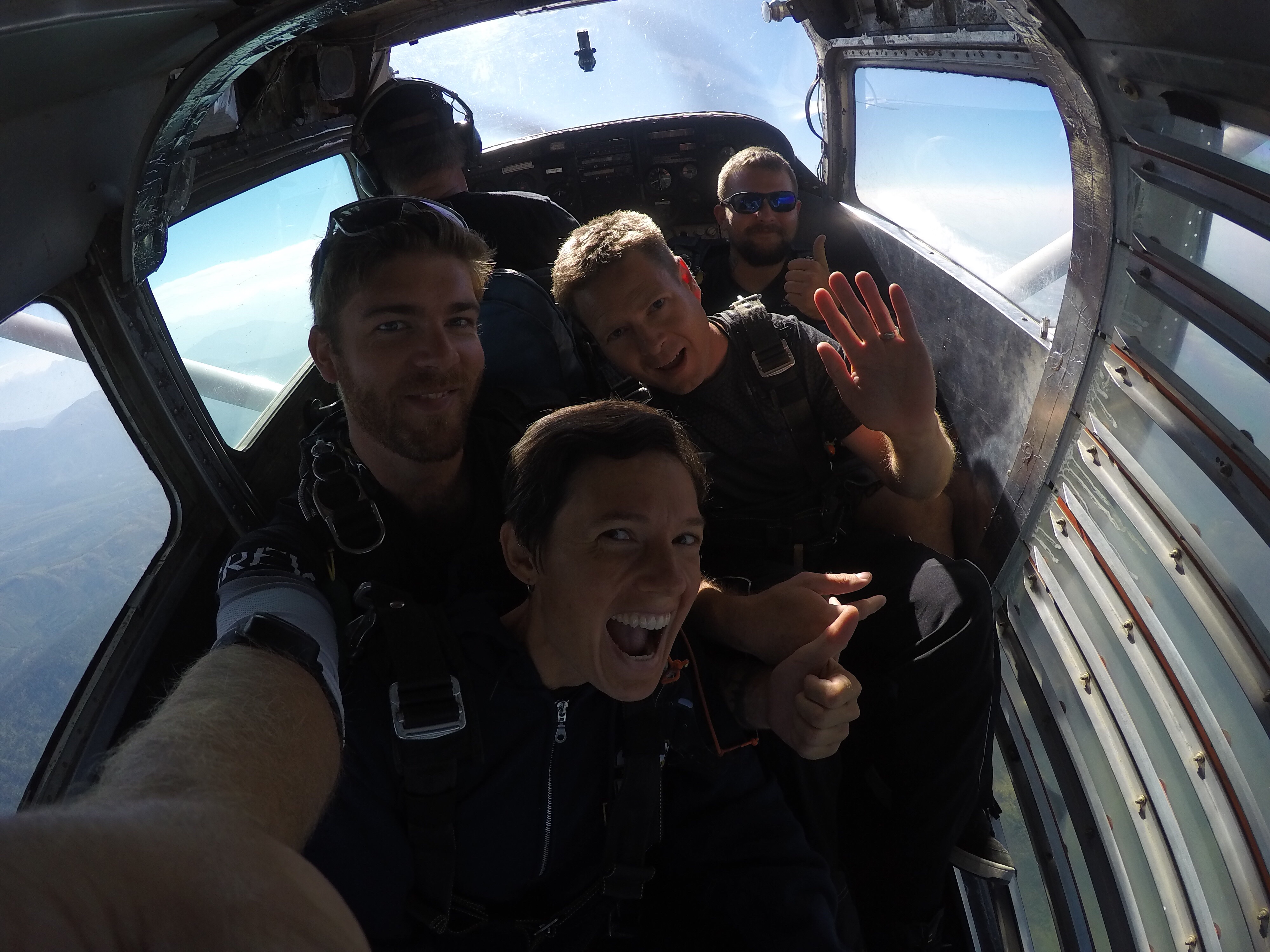 This morning we woke up with some anticipation. After choking down a granola bar and signing a million page waiver, we boarded our plane for our first skydive. Do you recognize the plane? I guess it was used in the movie ‘Blow’.