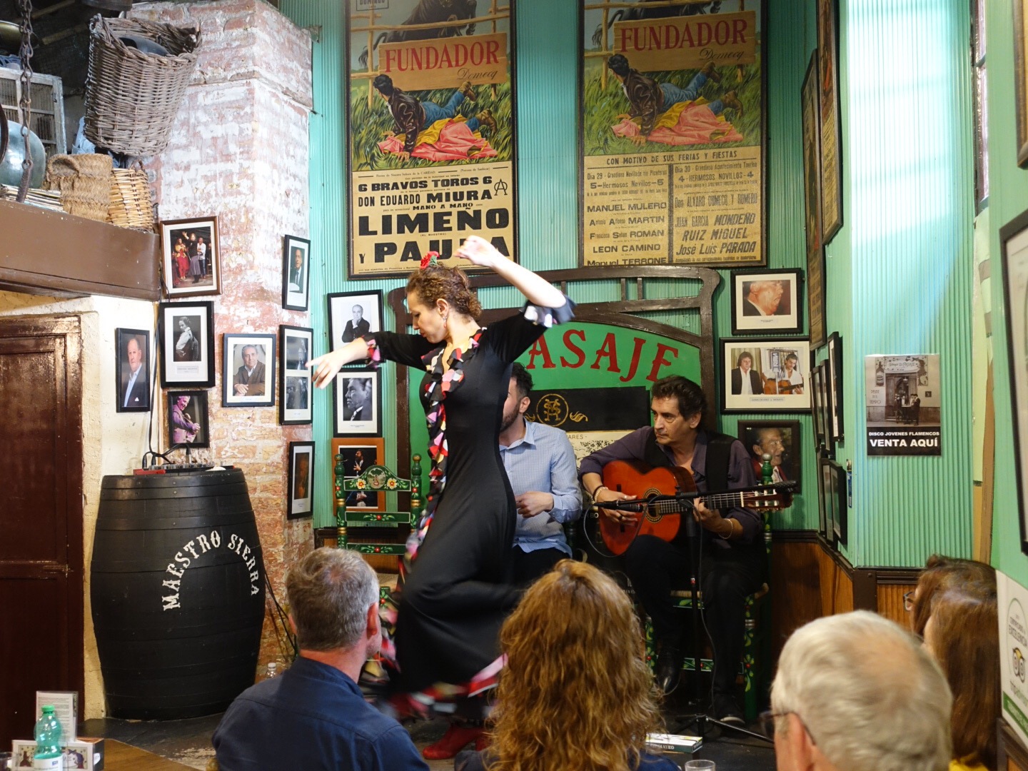 Next I went to a popular flamenco and sherry bar. If you haven’t seen a flamenco show, it’s also something that can’t be described with words and images. There’s usually someone playing rhythmic guitar and a singer who sings in a very passionate and emotional way, almost wailing at times. The dancer is also very emotional and uses his/her whole body (stamping, clapping, facial expressions) to adjunct the dance.