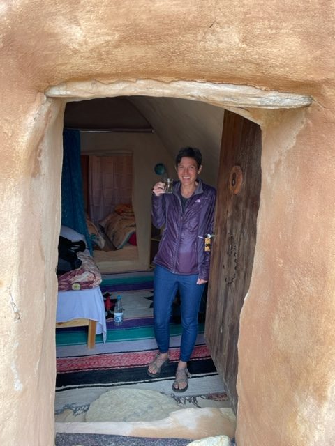 We were shown to our room, which amazingly stays cool in the heat and warm in the cold. I’m surprised that RockyB didn’t roast me more in her blog (https://www.delafrijoles.com/2023/05/from-stormy-seas-to-magical-mountains/) because I still give her a hard time over Rock-Awn 4.0 when she booked a hotel room that didn’t have a bathroom door. This cave room took it to another level because it had a shower at the foot of our beds! One night we laughed so hard because RockyB was showering while I was laying in my bed reading my book.