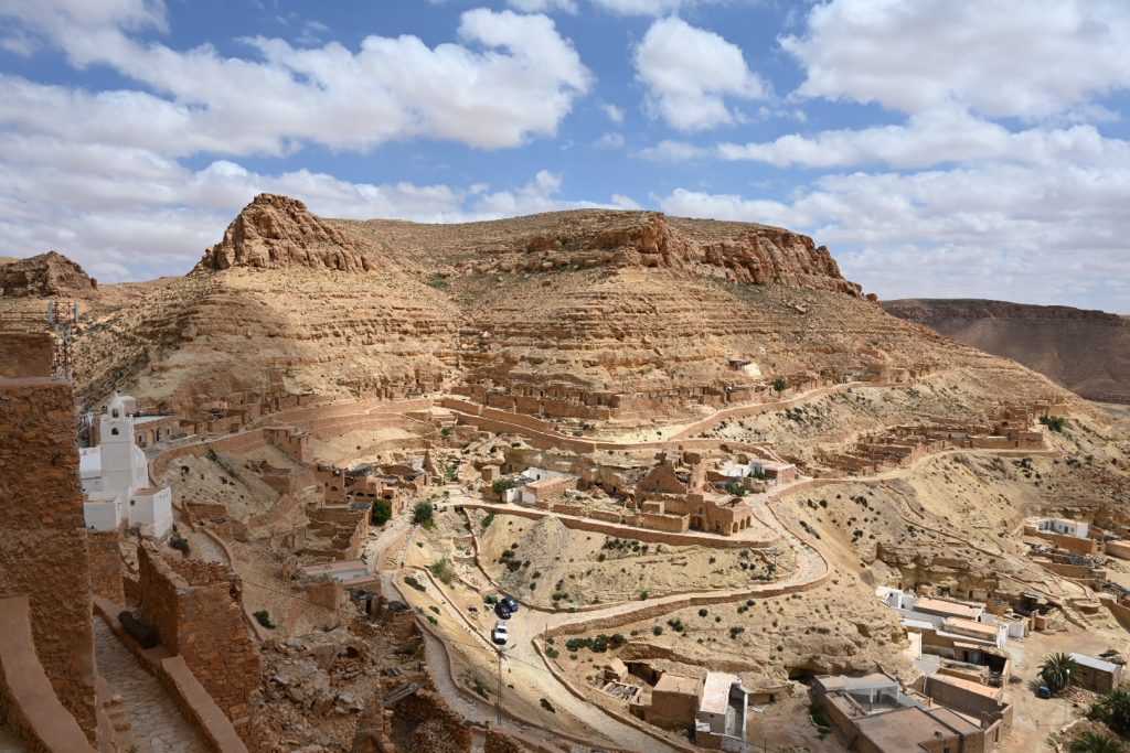 We then drove to Chenini village, which is a much larger village built into the side of a mountain, including a striking white mosque.