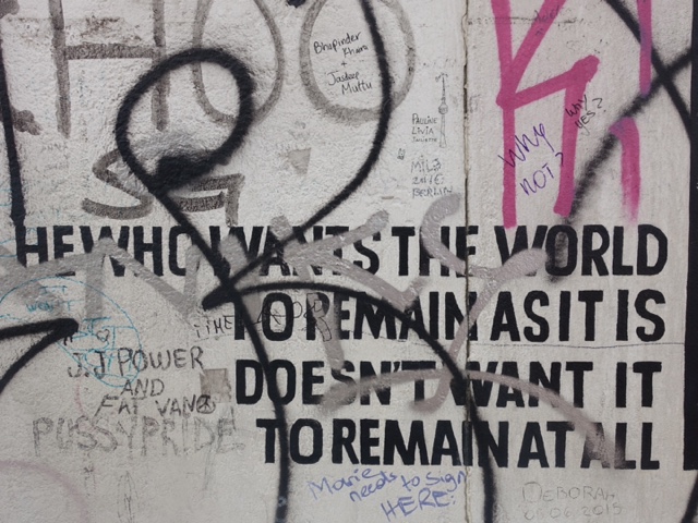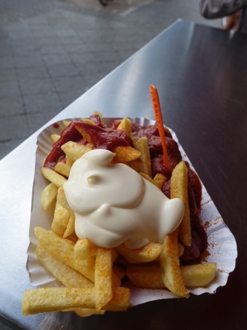 Our last few days in Berlin have been spent riding bikes around to various points of interest in the city and eating some pretty delicious food. DawnO got to taste the famous currywurst and said it wasn’t the worst wurst. She talked me into sampling the fries with curry seasoning, mayo and ketchup. Yum!