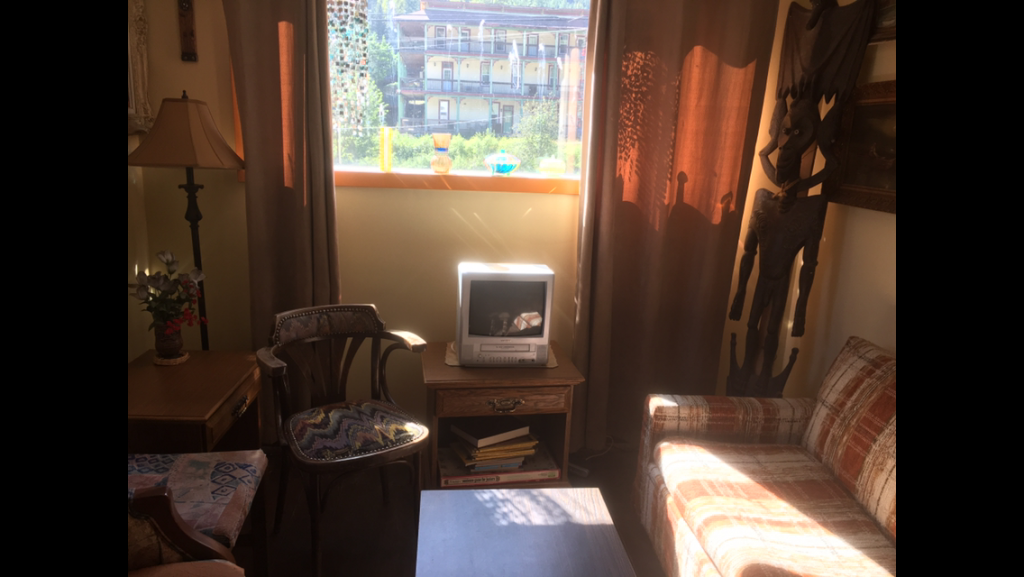 Of course there had to be some true adventure, so Rox booked us a night at a 125 year old hotel in Ymir, just outside of Nelson. It’s a maze of stairways and hallways covered with art, trinkets, and bad furniture from the 70s. She told me that there was a surprise (remember that the last accommodation surprise she had for me was no bathroom door in Mexico!). This time it was that our room had bunk beds! Awesome. My personal favourites were the 12” VHS TV combo in the common room and the fruit cups and Dad’s cookies for breakfast.