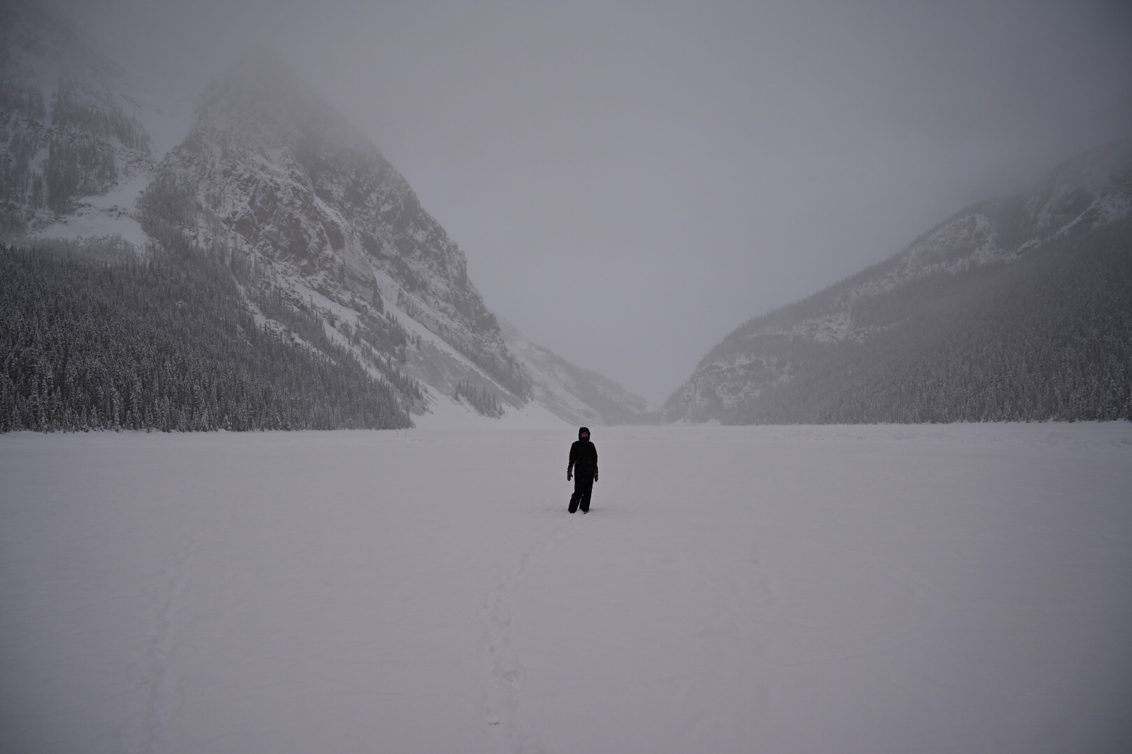 On the first day we got up early to head to Lake Louise to skate on the lake without the crowds. Mother Nature must have been laughing at us when we arrived to more than a foot of fresh snow, making for impossible skating conditions. No problem for these Olsons – we strapped on our snowshoes and enjoyed an untouched powder route.