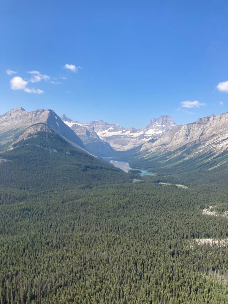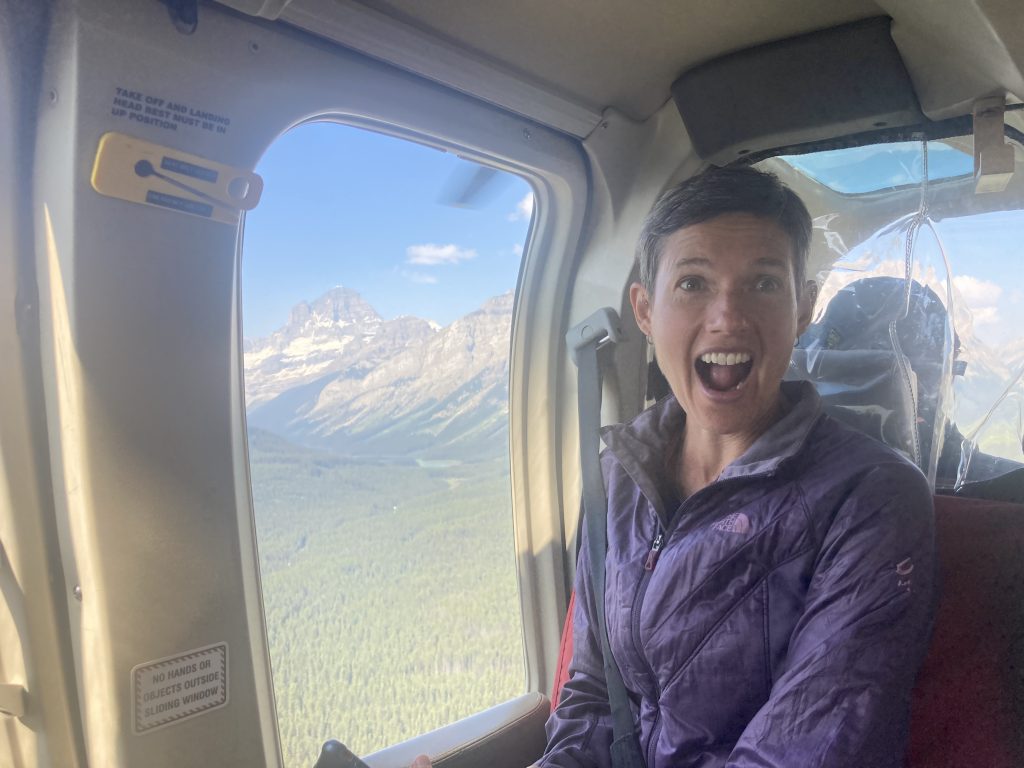 We were on the 6th flight for the 6 minute chopper ride up to Assiniboine. I was in awe of the scenic helicopter views and our first glimpse of Assiniboine, which is the highest peak in the southern range of the Canadian Rockies.