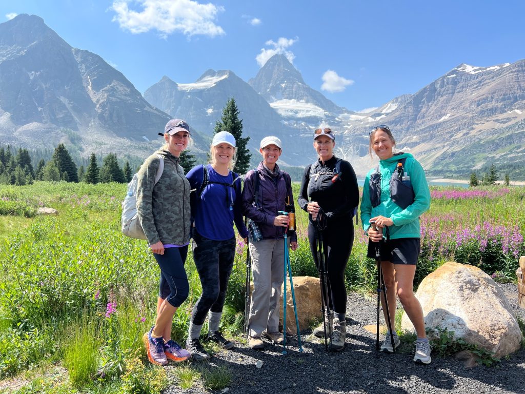 I rallied a group of tennis friends and Thursday night we were driving to Canmore in anticipation of this adventure. 2 of the girls were backcountry first timers, so there was a lot of gear sharing and pack packing advice.