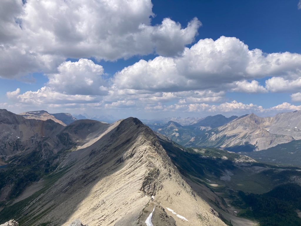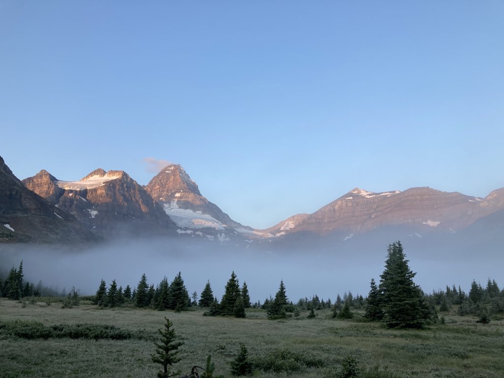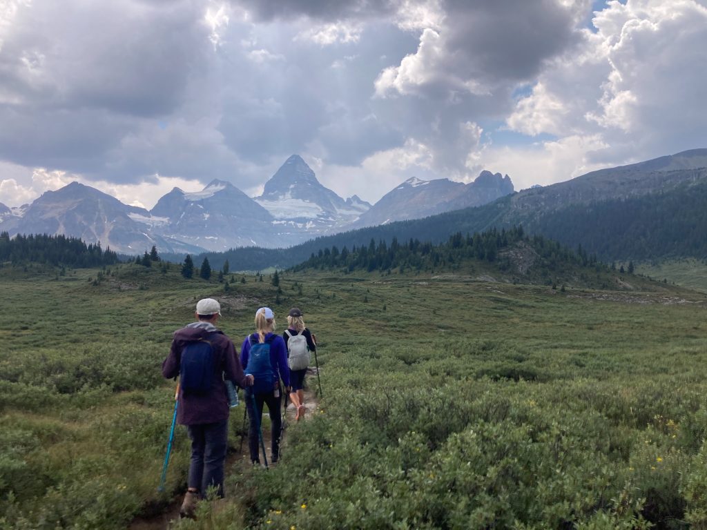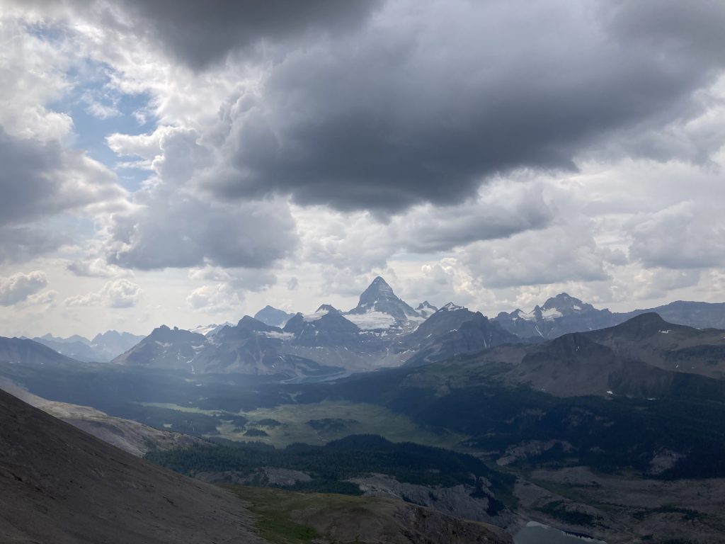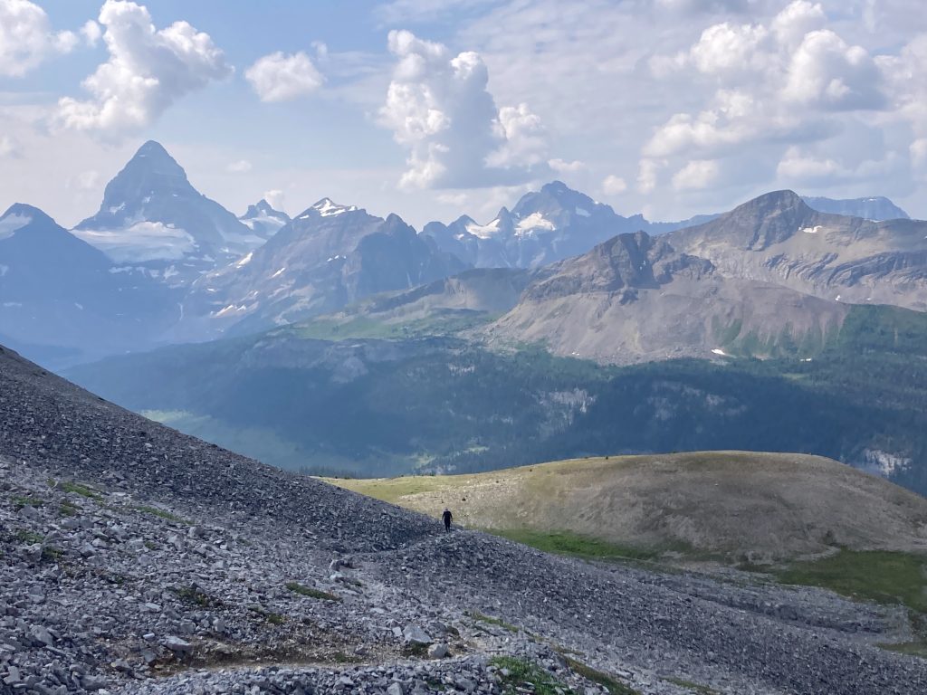 After our hut breakfast we set off for the 14.5km Windy Ridge and Windy peak. We were diverted by a grizzly on the trail and watched it from a distance as it moved through the meadow. Yikes. The hike afforded us views of the scale of Mount Assiniboine beside the others in the range.