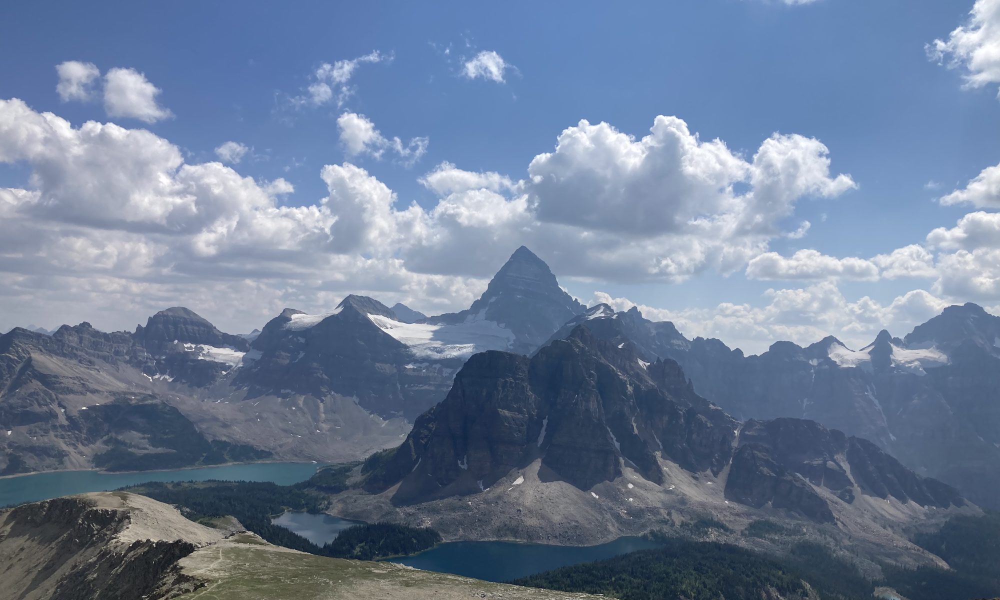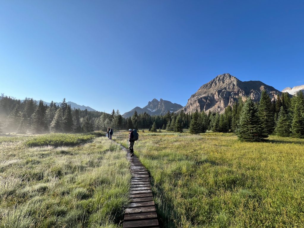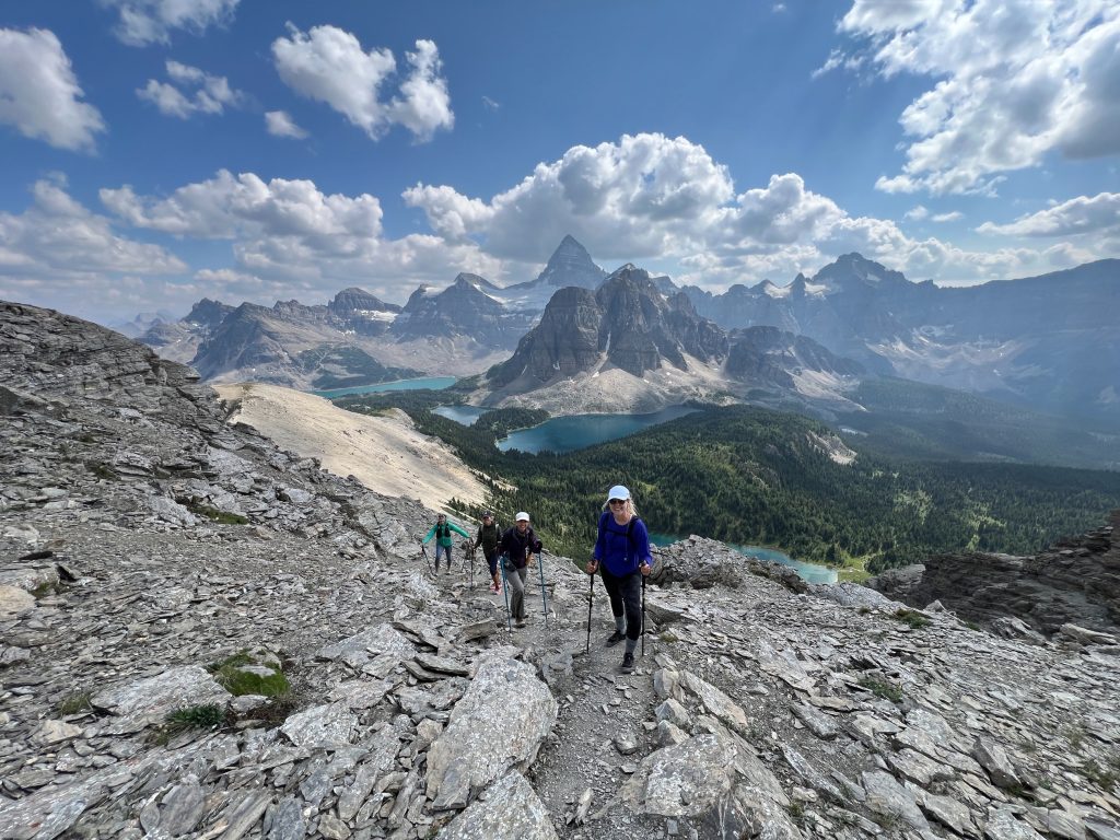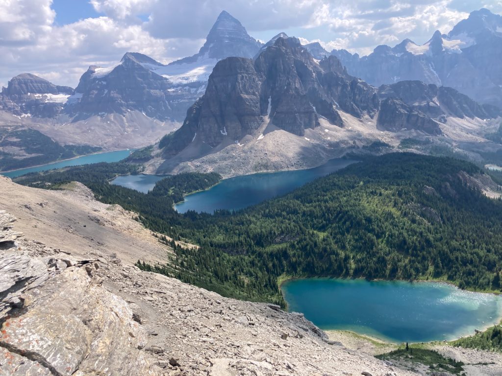 After our hut breakfast we set off for the 14.5km Windy Ridge and Windy peak. We were diverted by a grizzly on the trail and watched it from a distance as it moved through the meadow. Yikes. The hike afforded us views of the scale of Mount Assiniboine beside the others in the range.