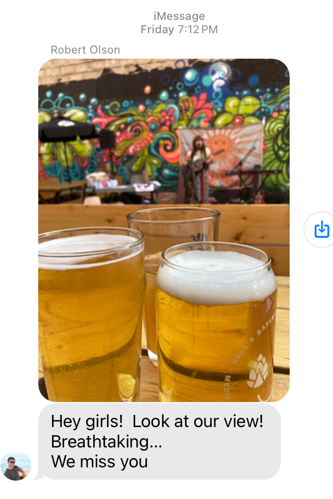 You’ve probably been wondering what RobO was up to when I was adventuring all weekend. Here’s a text I received when we got back to civilization: