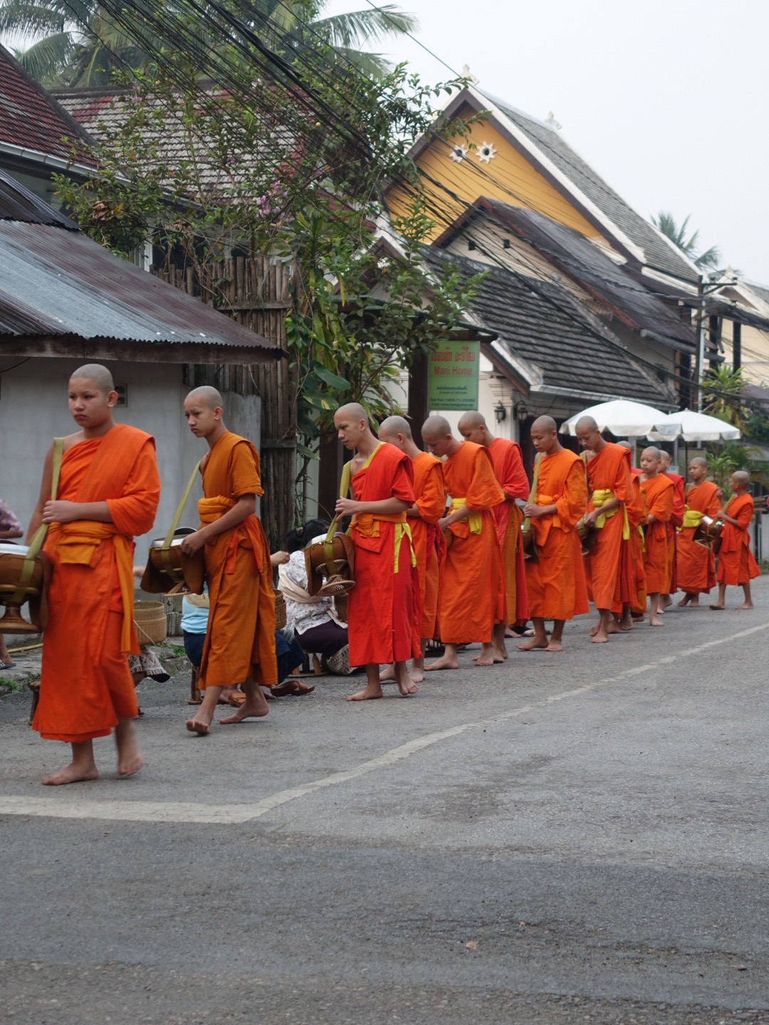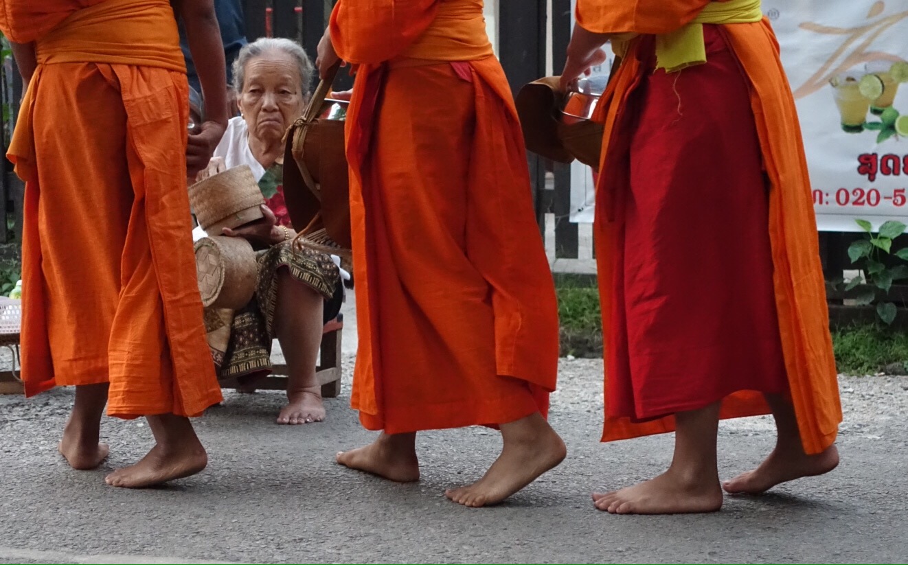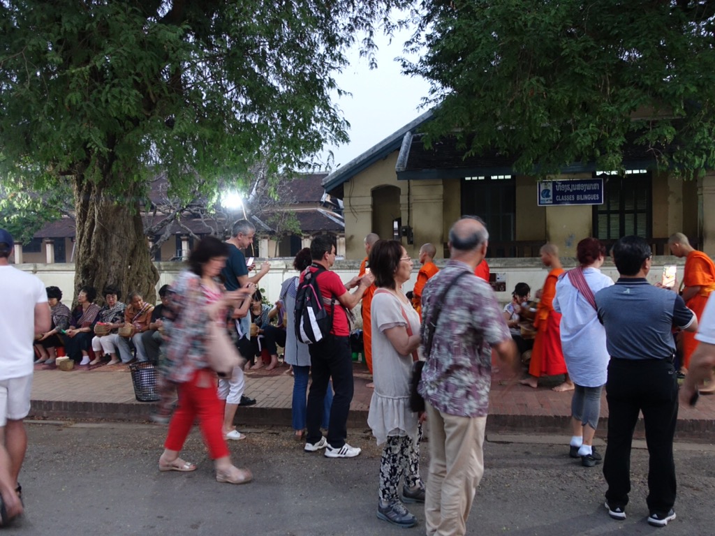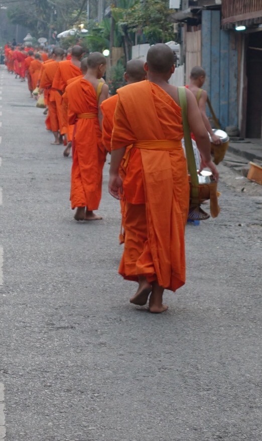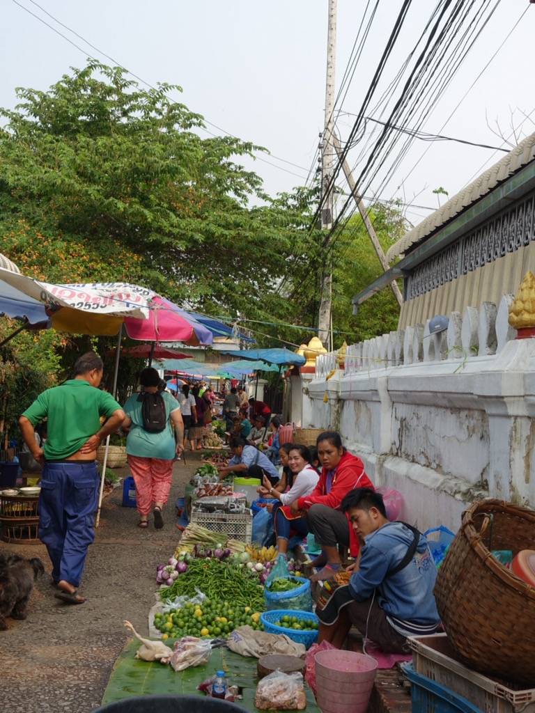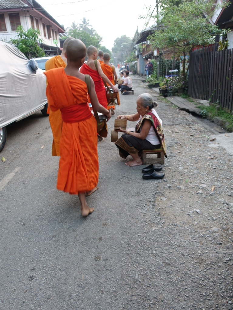 One of my goals for this 6 months is to take time to slow down, breathe, and savour the experiences. So far, so good, and this week in Luang Prabang is an exceptional exercise in slow travel. We have a main activity each day, but the rest of our time is spent wandering, exploring, tasting, and absorbing. This leads us to some unexpected things: sipping homemade whiskey with a local (hoping we would not go blind) then trying to plan a graceful escape from the situation, practicing English with kids in the market, and the feeling of almost floating from the awesome vibrations of a temple full of chanting monks.